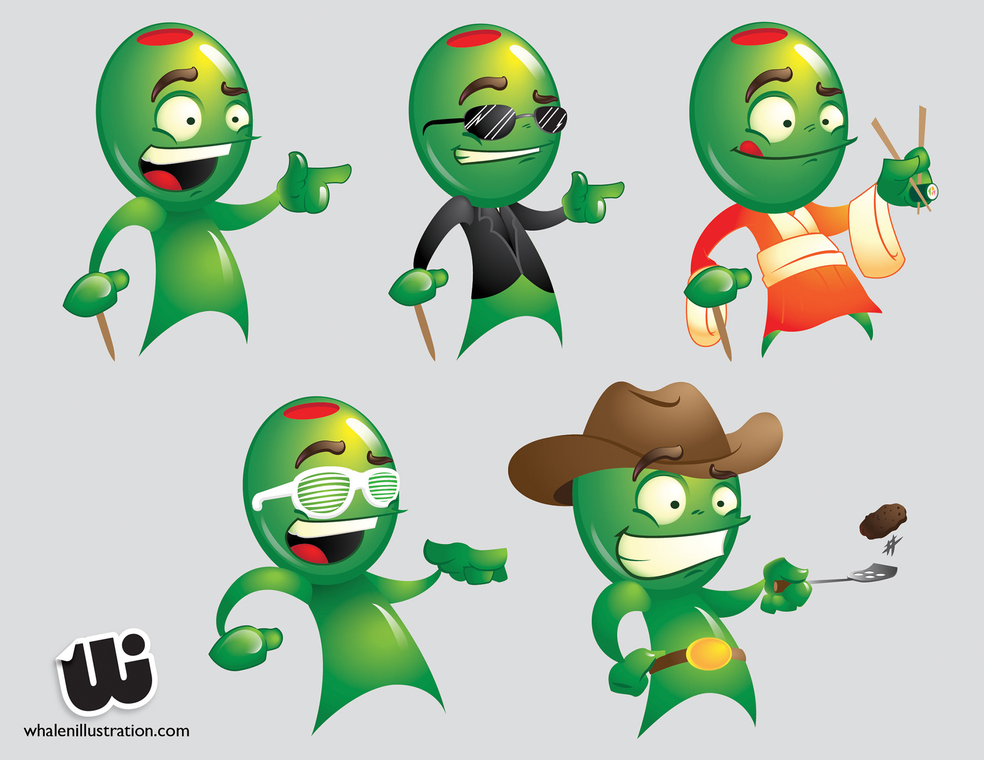 These are characters I designed for the Media Kit that Happy Hour Cards sent out to their investors. They also used one of my characters for their icon on the Apple App store.